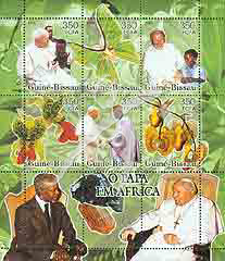 罗马教皇约翰·保罗二世(1920-2005)逝世,教皇与非洲儿童、南非前总统曼德拉、兰花及蝴蝶等小版张(6票+3枚附票)