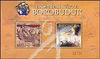 巴厘岛探险船,爪哇海中的中世纪帆船、婆罗浮屠考察船、佛像及浮雕小全张(2票)(已售缺)