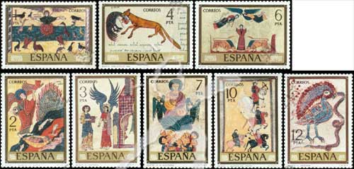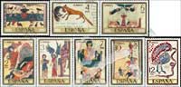 邮票日,古手抄本细密画小鸟的祝福、天使与生命长河、天使守天堂大门、狐狸与公鸡、丹尼尔在狮子洞、天使和教徒、启示骑马人、鸟与蛇8全
