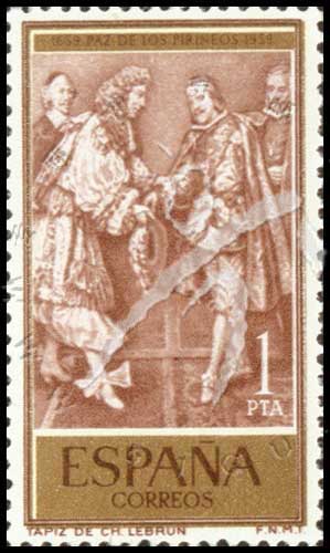 比利牛斯山条约签定300周年,马萨林在法萨能岛会见唐·路易斯·德哈罗1全
