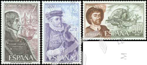 名人(第11组),航海家丘鲁卡.埃洛尔卡与圣胡安德内波穆塞诺号帆船、政治家路易斯.苏尼加、胡安.安.埃尔卡诺与维克多里亚号帆船雕刻版3全