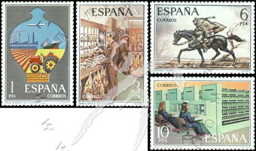 邮政业务,邮政储蓄盒及飞机、船和拖拉机、列车上邮件分拣、骑马邮递员及邮件自动分拣机4全