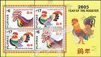 鸡年生肖,五彩公鸡及中文“鸡年”小全张(2套共4票)