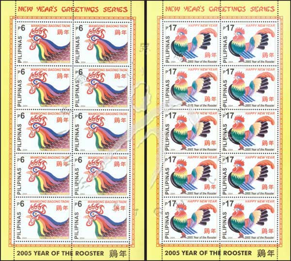鸡年生肖2枚小版张(10套共20票)