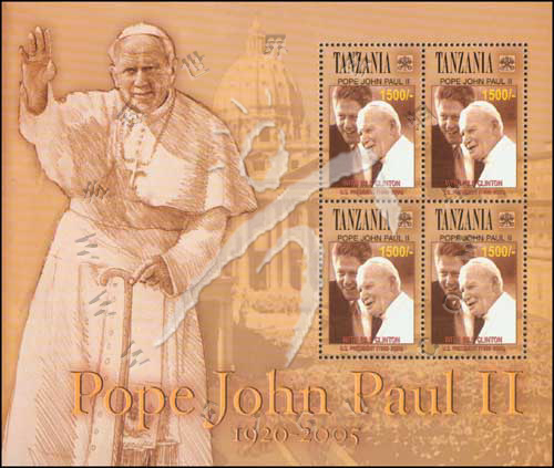 教皇约翰·保罗二世(1920-2005)逝世纪念,保罗与克林顿合影小全张(4票)