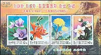 伟大领袖金正日华诞,数字“2.16”、山峰、花菖蒲、百合、蒲公英及梅花草小全张(4票)