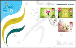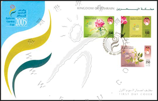 巴林园艺展,花卉及哈里发亲王头像3全邮票首日封