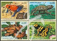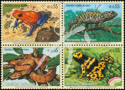 濒危物种,火红箭毒蛙、黄条丛蛙、地毯变色龙及亚马孙树蟒蛇4联