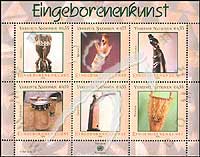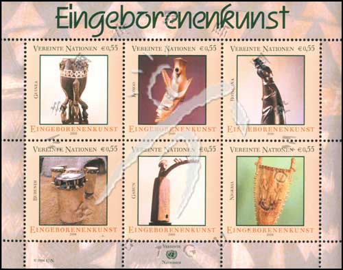 土著艺术系列—非洲乐器,几内亚、刚果、博茨瓦纳、布隆迪、加蓬及尼日利亚小全张(6票)