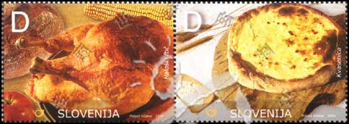 斯洛文尼亚美食,火鸡、玉米、苹果及糕点D类邮资票2联