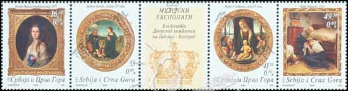博物馆绘画藏品展,德国宫廷画家F.X.温特哈特尔绘《佩蓝绶带的女子》、《孩子的朝拜》、比亚吉欧·安东尼奥绘《圣母子》及懊悔带过桥4联