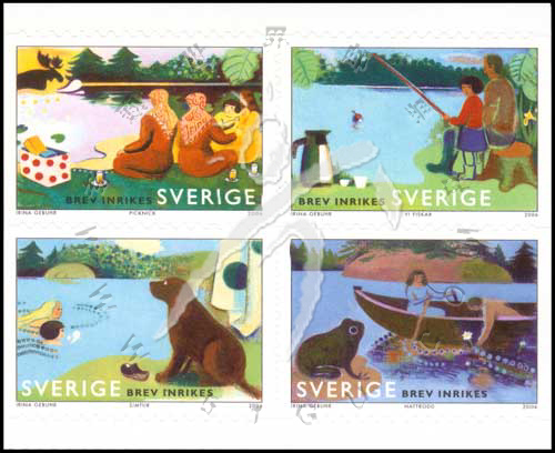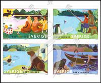 夏季邮票—湖滨夏日,野餐、垂钓、游泳及划船不干胶自贴票4全