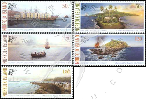 皮特凯恩岛民抵达诺福克岛150周年系列一,移民者、船及面包果树等5全