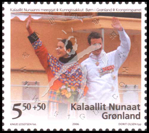 儿童基金会附捐票,着传统格陵兰服饰的丹麦王储夫妇挥手合影1全