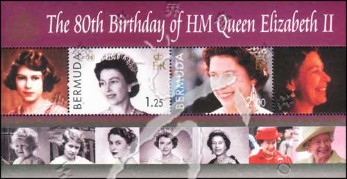 伊丽莎白二世女王80岁生日,经典照片小全张(2票+2枚附票)