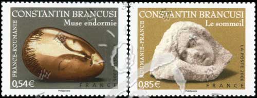 罗马尼亚裔法国雕塑家康斯坦丁·布朗库西(1876-1957)诞生130周年,青铜雕刻《沉睡的缪斯》及大理石雕刻《沉睡》2全(与罗马尼亚联合发行)