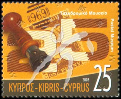塞浦路斯邮政博物馆建成25周年,数字“25”、票中票及印章1全
