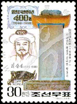 DPK#3908 抗倭战争胜利400年,李舜臣将领及纪念碑30j (3-2) 1枚