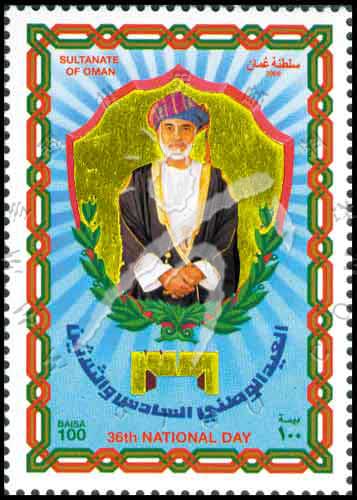 阿曼国庆36周年,苏丹卡布斯国王烫金像1全