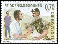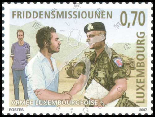 卢森堡参加联合国维和行动,受助者与维和士兵握手1全