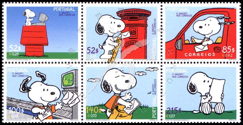 卡通形象史努比写信、投信、送信至邮政中心、分拣信、邮递信、读信等6全