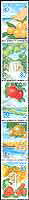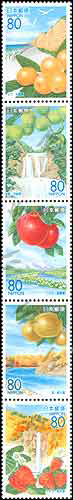 故乡邮票—关东地区的水果,枇杷、梅子、苹果、梨及草莓5联