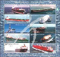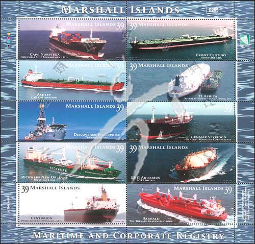 马绍尔群岛的船务和船舶注册,“阿什利号”、“发现者计划号”、“新奥尔良瑞克莫斯号”及“百人队长号”等轮船小版张(10票)