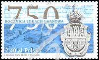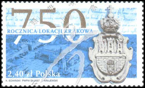 克拉科夫建城750周年,城市盾徽、老城俯瞰图及1257年国王签署的建城文件雕刻版1全
