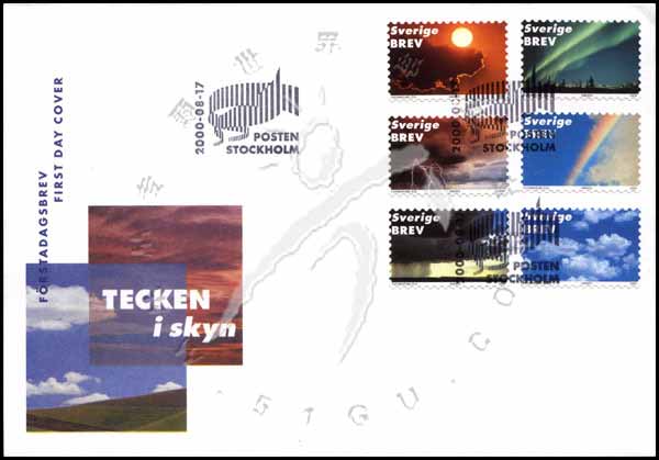 天空景象,暴雨、闪电、北极光、彩虹等不干胶自贴票(瑞典首套不干胶自贴票)首日封1F