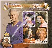 伊丽莎白二世女王80岁生日,各时期经典照片小全张(4票)