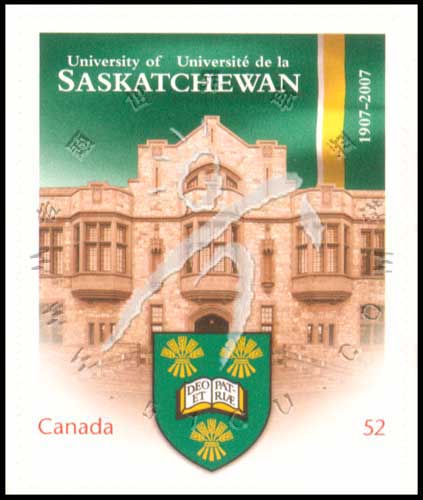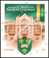 萨斯喀彻温大学建校百年,校徽及教学主楼外景不干胶自贴票1全