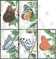 香港蝴蝶系列二,串珠环蝶、红肩锯粉蝶、忘忧尾蛱蝶、豹斑双尾灰蝶及苎麻珍蝶5全