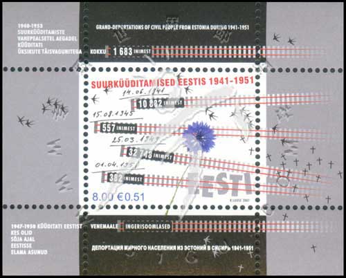 苏联流放爱沙尼亚人,铁轨及流放时间等小型张