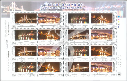 韩国桥梁系列四,釜山广安大桥、圣水大桥、城山大桥及永宗大桥小版张(4套共16票)