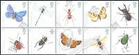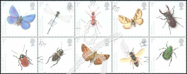 保护濒危物种—昆虫,阿多尼斯彩蝶、南部豆娘、红蚁、毛毡衣蛾、鹿角锹甲、红金龟、蟋蟀、银星弄蝶、红切叶蜂及小金龟10联