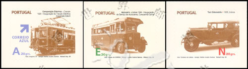 城市交通系列一,葡萄牙内战时期使用的汽车及电车不干胶自贴票3全