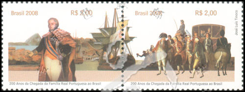 葡萄牙皇室抵达巴西200周年,帆船及登陆场景2联