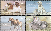 动物,豚鼠、狗、马及金吉拉兔子附捐票4全