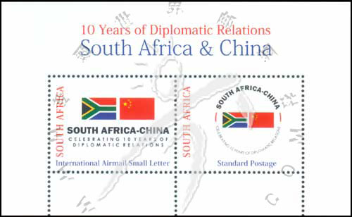 南非与中国建交10周年,南非及中国国旗小全张(2票)