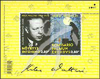 芬兰作家米卡·沃尔塔利(1908-1979)诞生百年,肖像、签名及其小说封面小全张(2票)