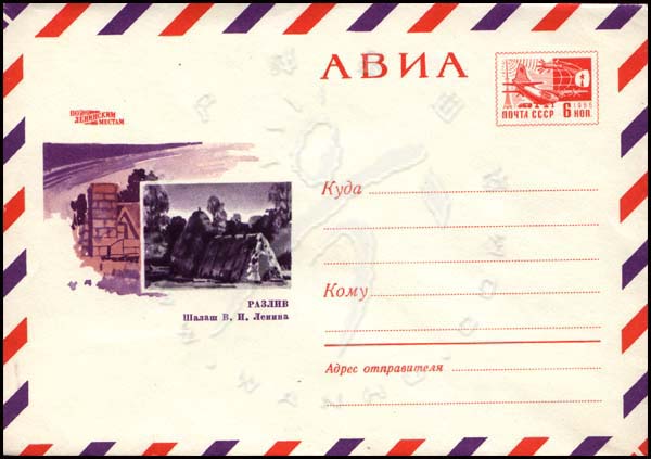 列宁在拉兹里夫湖畔的草蓬邮资封1F