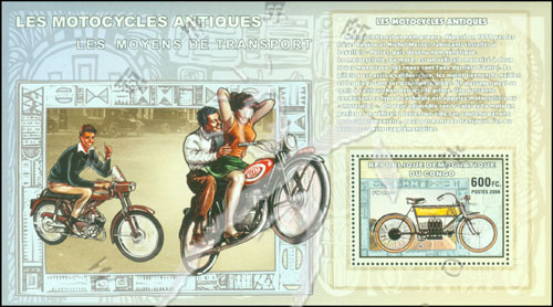 摩托车,1905年生产的摩托车及文字介绍小型张