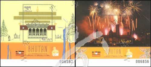 史密森民间艺术节,徽志、烟花及不丹寺庙结构示意图2枚小型张