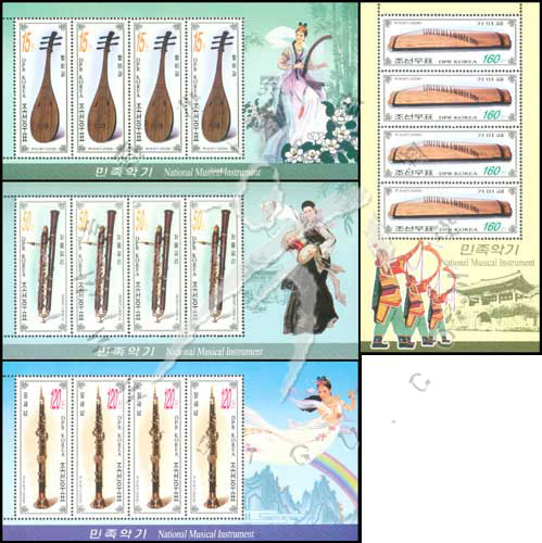 民族乐器,木管乐器及伽耶琴等4枚小全张(各4票)