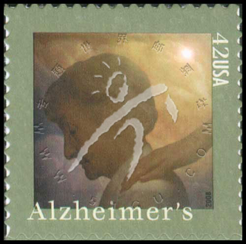 社会问题系列邮票:老年痴呆症,老人侧面像及搭在老人肩上的手不干胶自贴票1全