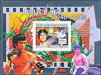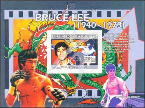 动作影星二,李小龙及其主演影片《精武门》和《猛龙过江》海报小型张