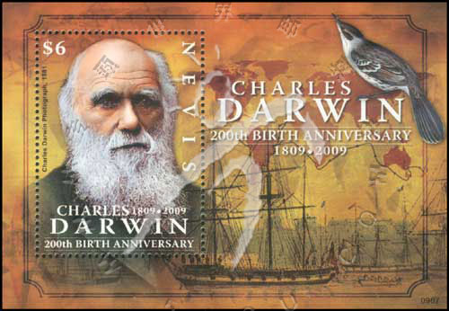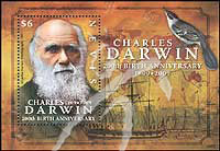 博物学家查尔斯·达尔文诞生200周年,肖像及鸟小型张
