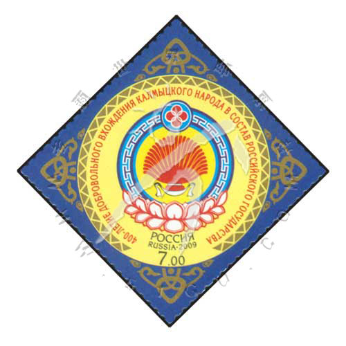 卡尔梅克人自愿加入俄罗斯400周年,卡尔梅克共和国国徽菱形票1全