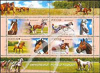 俄罗斯马,弗拉基米尔及奥廖尔等良种马匹小全张(4票)