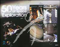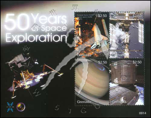人类探索太空50周年系列二,肯尼迪航天中心、“发现”号航天飞机、国际空间站、土星极光及日本为国际空间站研制的实验舱小全张(4票)